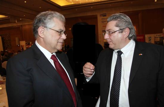 Der griechische Parlamentspräsident Herr Filippos Petsalnikos und Herr Rechtsanwalt Abraam Kosmidis (managing partner der Anwaltsgesellschaft Kosmidis & Partner)